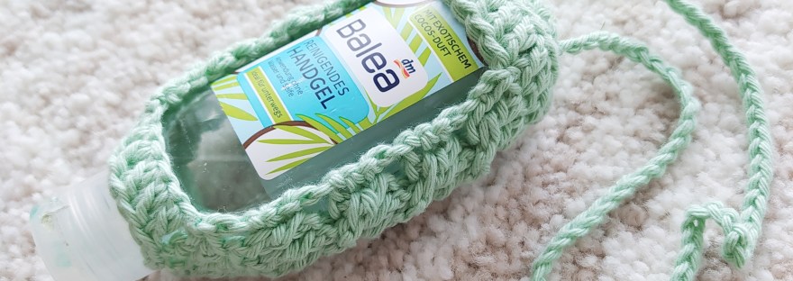 This week famous Corona virus has reached Freiburg. But we have got nothing to worry about if we keep taking care of simple hygiene measures! Regular hands disinfection after contacts with door handles in public places is one of them. To keep a disinfection lotion always close and still be stylish? Possible if you have a nice looking lotion case 🙂 I have crocheted one yesterday and now I want to share the pattern with you! You can hang it on your purse or belt.